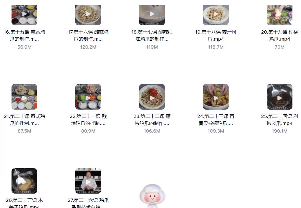 网红二姐姐卤味 教程包含鸡爪腌制 姜蒜汁制作 卤水花生 酸萝卜腌制 凉拌素菜 柠檬鸡爪配料与制作 蒜蓉鸡爪配料与制作 藤椒鸡爪配料与制作 藤椒鸭胗配料与制作- 炒田螺 糖色炒制 五香新卤水及日常操作 鸿运当头制作方法 秘制猪蹄- 盐焗新卤水及日常操作 手扒等