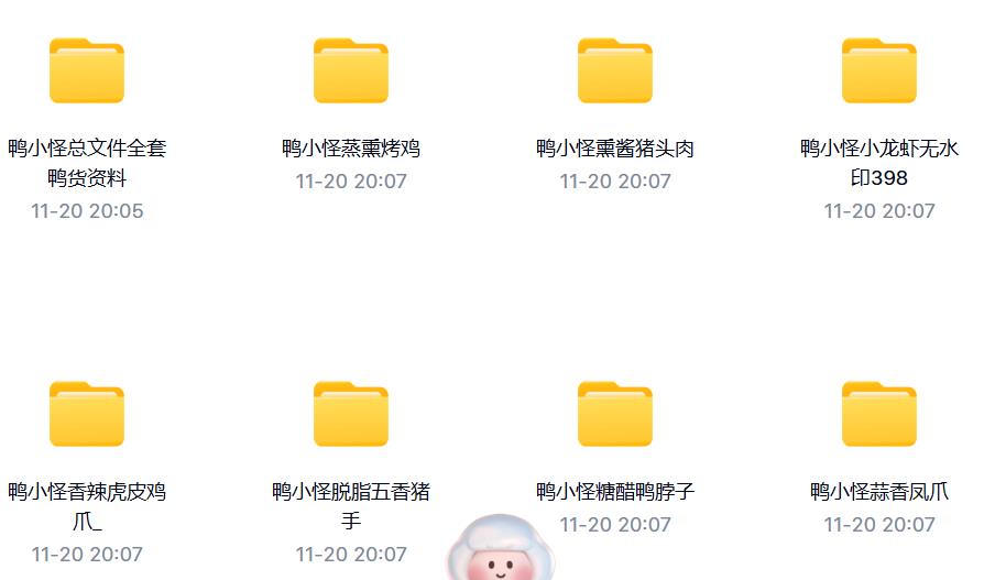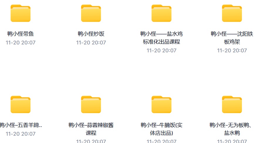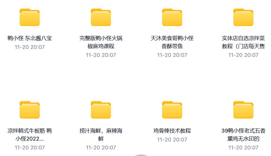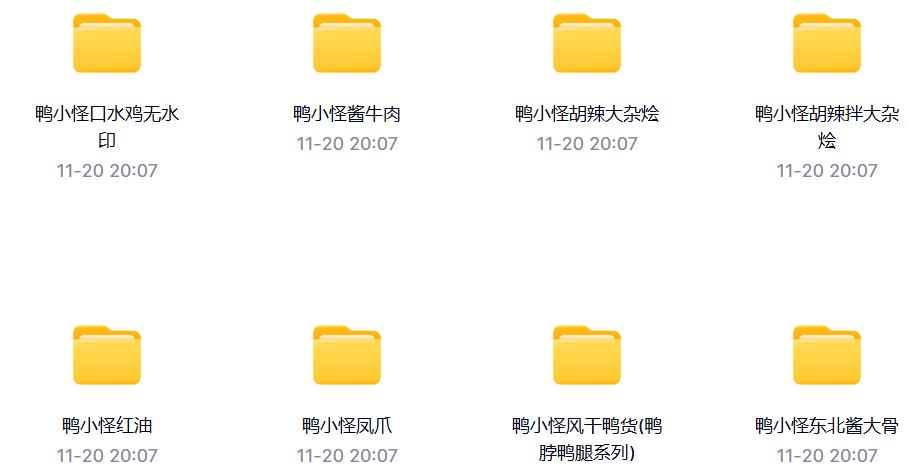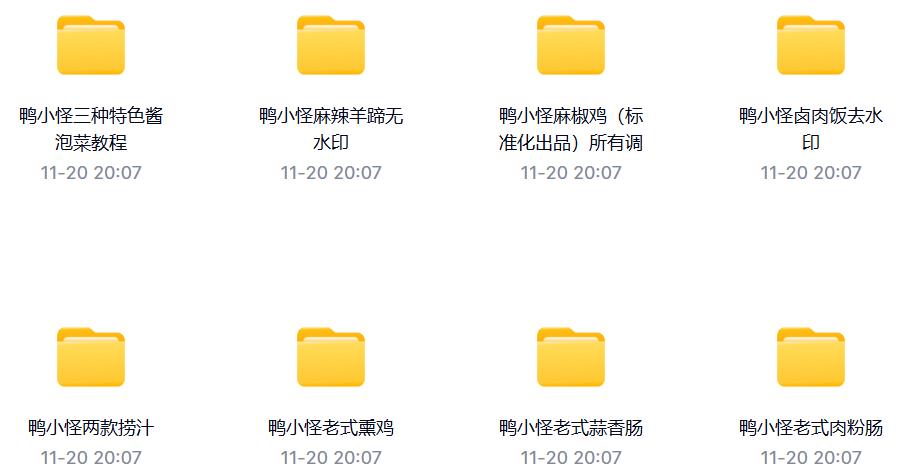 1.鸭小怪之风干鸭货(鸭脖、鸭腿系列) 2.鸭小怪之酸辣无骨鸡爪包括红油技术 3.鸭小怪之口水鸡+肉类专用红油教程 4.鸭小怪之五香带鱼罐头 5.鸭小怪之卤肉饭系列 6.鸭小怪之三种特色酱泡菜教程 7..鸭小怪之油捞酱香花生米 8.鸭小怪之凉拌韩式牛板筋 9.鸭小怪之两款捞汁 10.鸭小怪之黑鸭全套 11.鸭小怪之东北大冷面➕冷面酱制作 12.鸭小怪之自选拌菜凉拌菜(实体店技术) 13.鸭小怪之胡辣拌大杂烩 14.鸭小怪之麻椒鸡(标准化出品)调料精确 15.鸭小怪之香辣虎皮鸡爪工厂级标准化 16.鸭小怪之五香熏鸡 17.鸭小怪之酱八宝 18.鸭小怪之麻辣羊蹄、羊头、肚包肉,盘肠 19.鸭小怪之甜辣鸡骨棒 20.鸭小怪之铁板烤鸭、啤酒手撕鸭 21.鸭小怪之小龙虾无水印 22.鸭小怪之蒜香烤鸡(三黄鸡) 23.鸭小怪之熏酱猪头肉 24.鸭小怪之盐水鸭板鸭 25.鸭小怪之五香卤水 26.鸭小怪之糖醋鸭脖 27.鲜椒牛肉酱 28.蒜蓉辣椒酱 29.鸭小怪牛腩饭 30.五香羊蹄 31.盐水鸡 32.铁板鸡架等等 总共49款请看以下列图片目录为准