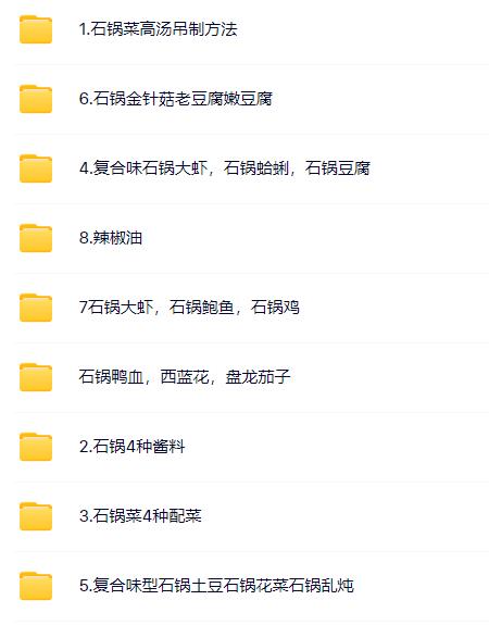 网红任大姐砂锅菜技术配方教程 内容包括:0重庆酸辣粉 1集绝密教程 2集油脂的熬炼 3集酱料炒制 4集菜品处理 5集秘制三鲜砂锅酱料 6集出锅流程红薯粉和纯菜砂锅 7米线面两掺面砂锅素什锦砂锅 8集一品海鲜砂锅米线 9集加卤汁红薯宽粉细土豆粉砂锅 10集方便面砂锅和猪蹄砂锅 11集土豆粉和素什锦砂锅 12集排骨红薯粉和土豆宽粉砂锅 13集快速出餐砂锅的做法酸菜豆腐砂锅 14集酸菜系列 15集麻花砂锅和粗粉细粉砂锅 16集排骨面砂锅 17集砂锅集锦 18集肉类的卤制 19集牛肉的卤制 20集红油辣椒油的做法 21集素丸子的做法 22集酥肉的做法 23集肉丸子的做法 24集金蒜油的做法