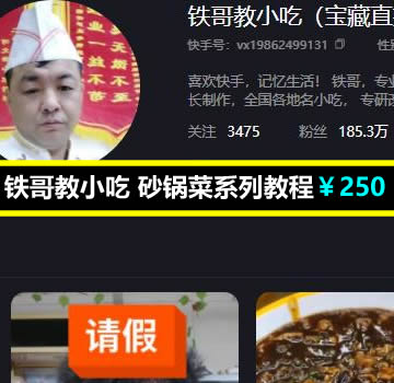 网红铁哥教小吃 砂锅菜系列教程 作者原标价:250元 该教程本站VIP免费下载学习 教学详情请看下图目录 开通VIP联系QQ:3390176791 支持手机在线观看与下载 如若本站内容侵犯了原著者的合法权益,可联系我们进行处理。