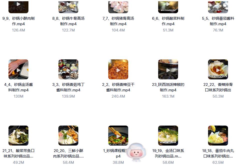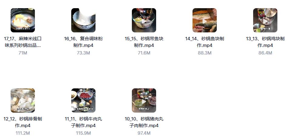 网红任大姐砂锅菜技术配方教程 内容包括:0重庆酸辣粉 1集绝密教程 2集油脂的熬炼 3集酱料炒制 4集菜品处理 5集秘制三鲜砂锅酱料 6集出锅流程红薯粉和纯菜砂锅 7米线面两掺面砂锅素什锦砂锅 8集一品海鲜砂锅米线 9集加卤汁红薯宽粉细土豆粉砂锅 10集方便面砂锅和猪蹄砂锅 11集土豆粉和素什锦砂锅 12集排骨红薯粉和土豆宽粉砂锅 13集快速出餐砂锅的做法酸菜豆腐砂锅 14集酸菜系列 15集麻花砂锅和粗粉细粉砂锅 16集排骨面砂锅 17集砂锅集锦 18集肉类的卤制 19集牛肉的卤制 20集红油辣椒油的做法 21集素丸子的做法 22集酥肉的做法 23集肉丸子的做法 24集金蒜油的做法